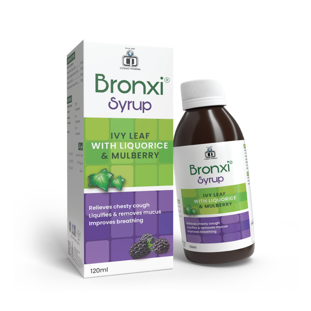 Bronxi Syrup is a pure herbal extract of Ivy leaf, licorice , toothsia and arrosa that soothes occasional irritation and clear the bronchial passage. It is a multiple symptoms formula that targets the symptoms of common cold ,nasal and chest congestion, cough, runny and stuffy nose. It does not cause drowsiness and is well tolerated among children.